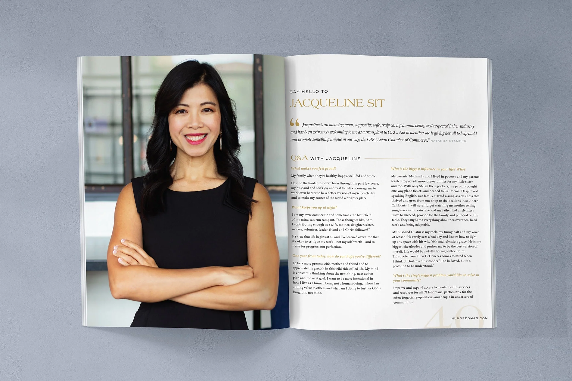 Hundred Magazine is more than a publication—it’s a celebration of character, community, and the wildly capable women shaping Oklahoma City. Founded by Hannah Schmitt in 2021, it annually honors 100 women not for titles or sponsorships, but for who they are. For the third and fourth issues, we led photography, design, and production from concept to print. Our challenge: highlight each woman’s individuality while maintaining a cohesive reading experience. Each profile opens with a nominator quote and flows into a thoughtful Q&A.